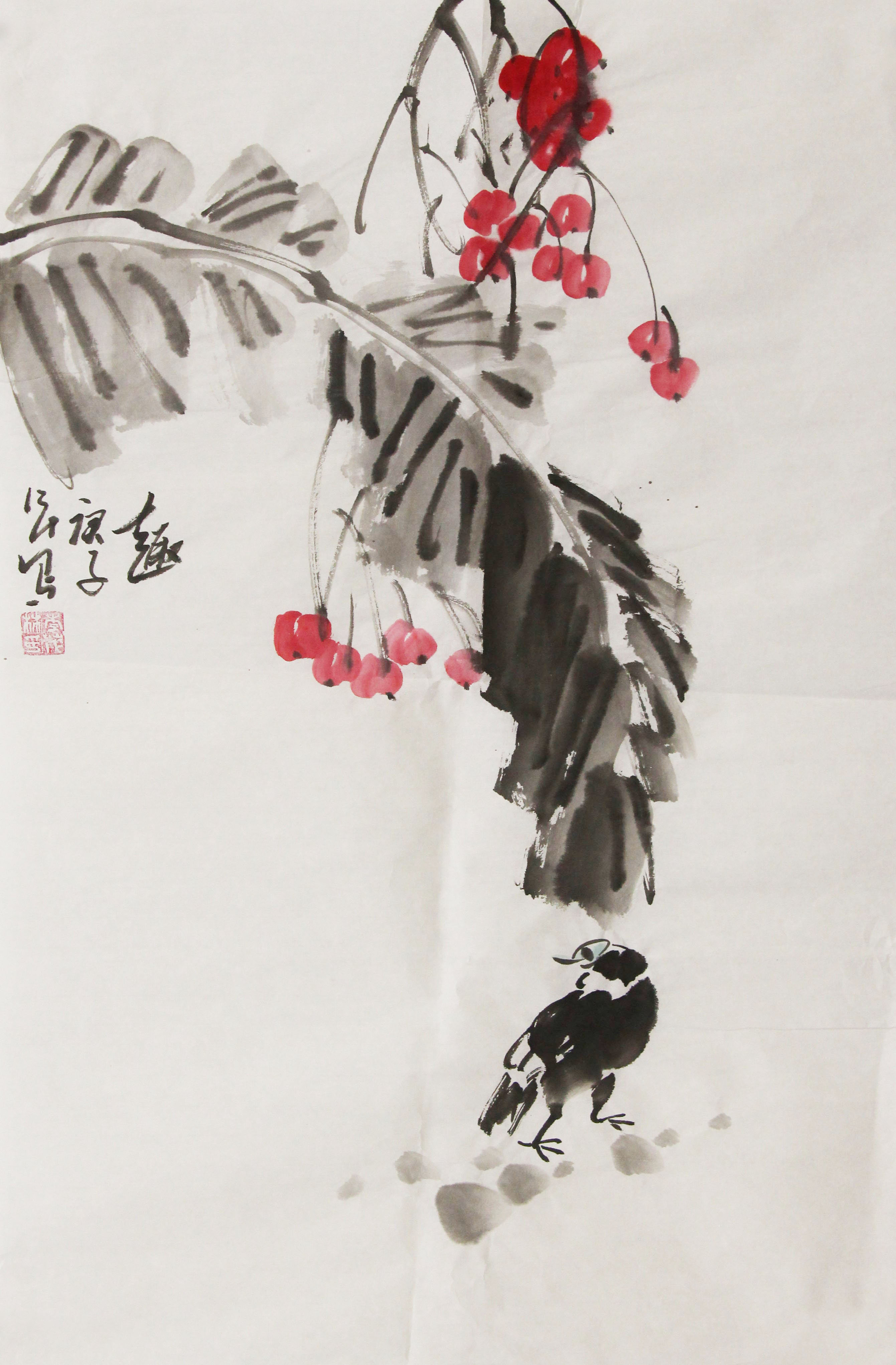 中国国家书画院会员 李茂林 花鸟图 附收藏宣传页